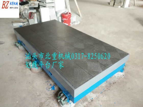 T型槽劃線平臺材質:高強度鑄鐵HT200-300工作面硬度為HB170-240,經過兩次人工處理(人工退火600度-700度和自然時效2-3年)使用該產品的精度穩定,耐磨性能好。