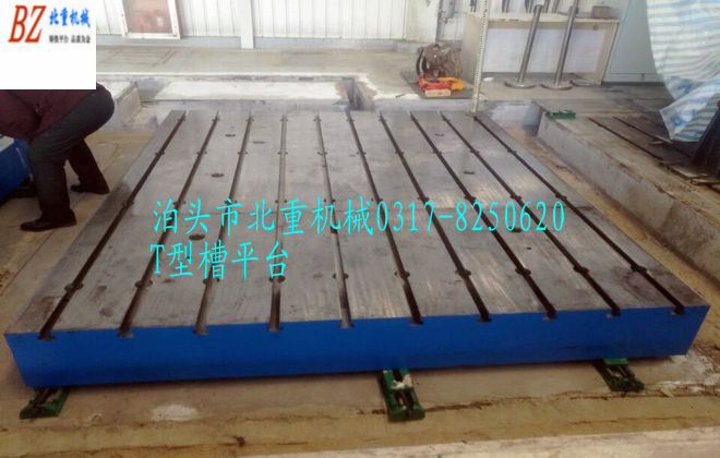 1、不開槽的大型T型槽鑄鐵平臺:考慮拼接方式塊數越少越好,這樣對于鑄鐵平板的精度影響較小;