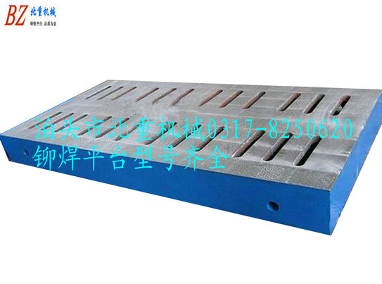 鉚焊平臺,鉚焊平板,焊接鉚焊平臺,鑄鐵鉚焊平臺,鉚焊T型槽平臺北重廠家現貨直供,鉚焊鑄鐵平臺材質高強度鑄鐵HT200-300,工作面硬度HB170-+240,硬度高耐磨性好.